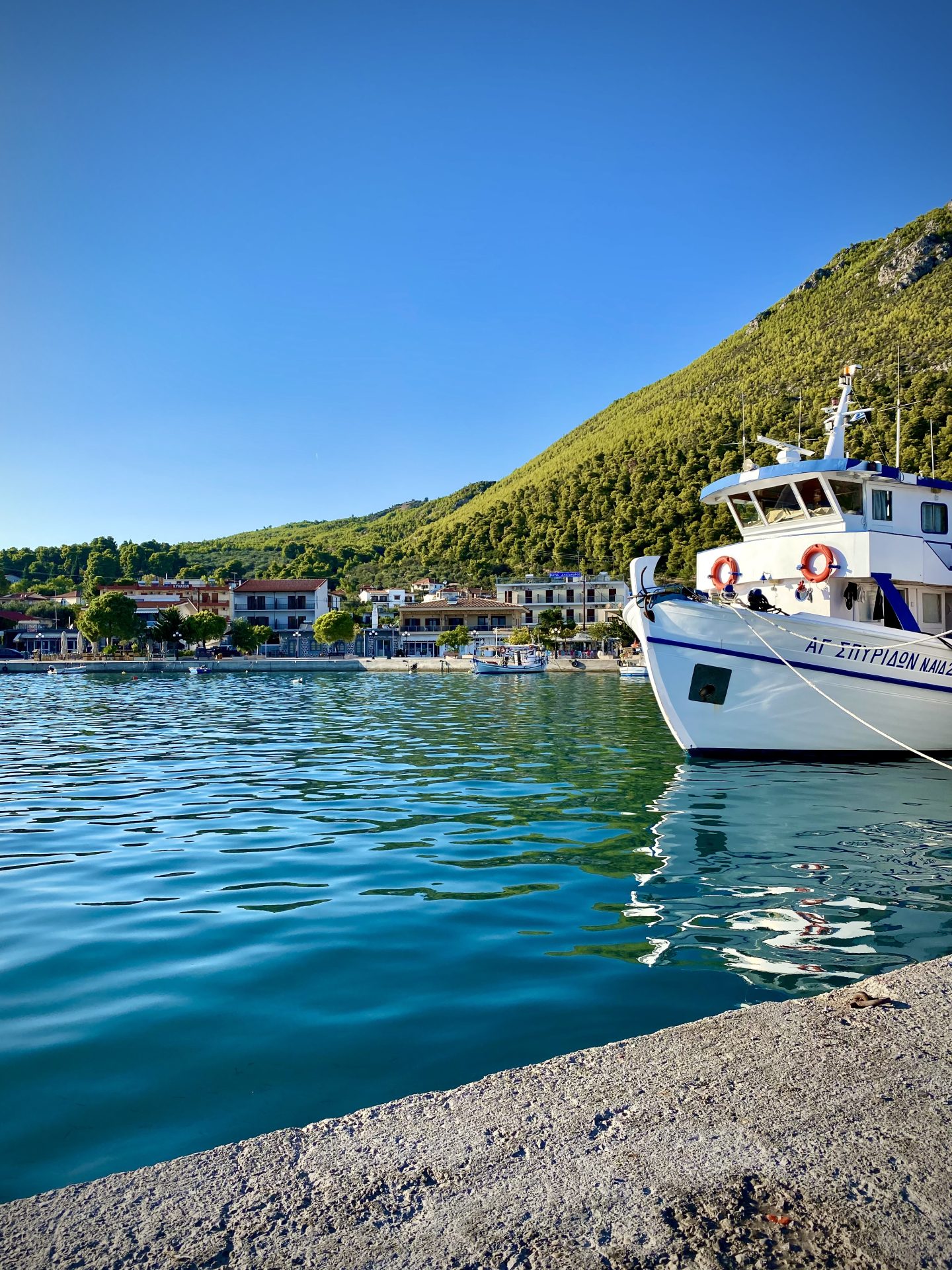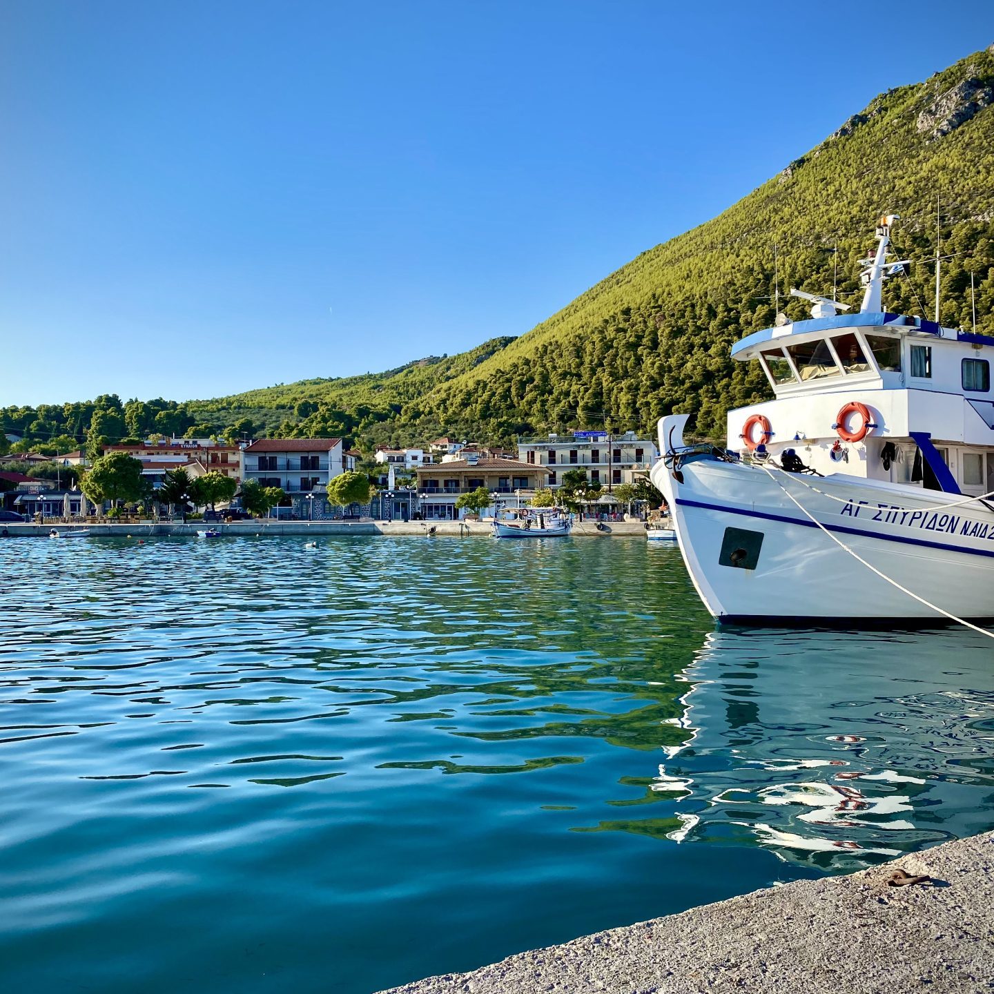 Die Ferienhäuser bieten ein idealer Ort für Ausflüge in die Umgebung. Morgens können Sie (zu Fuß) im charmanten Dorf Agios Georgios gehen und in der Bäckerei griechische Süßigkeiten kaufen oder einen Kaffee trinken in einem der lokalen Cafés. Abends können sie an der Promenade des Hafens spazieren gehen und in einem der vielen Restaurants des Ortes essen gehen. Sie können auch einen Tagesausflug nach Lichadonisia machen, was durch die Griechen auch „die Malediven, oder Seychellen, Griechenlands“ genannt wird. Die grüne Umgebung eignet sich hervorragend zum Wandern und Radfahren. Mit ein bisschen Glück kann man sogar die vielen vorbeiziehenden Delfine beobachten!